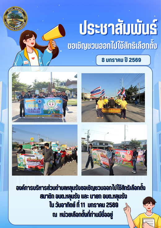 องค์การบริหารส่วนตำบลหลุมรัง ขอเชิญชวนออกไปใช้สิทธิเลือกตั้ง สมาชิก อบต.หลุมรัง และ นายก อบต.หลุมรัง ใน วันอาทิตย์ ที่ 11 มกราคม 2569 ณ หน่วยเลือกตั้งที่ท่านมีชื่ออยู่